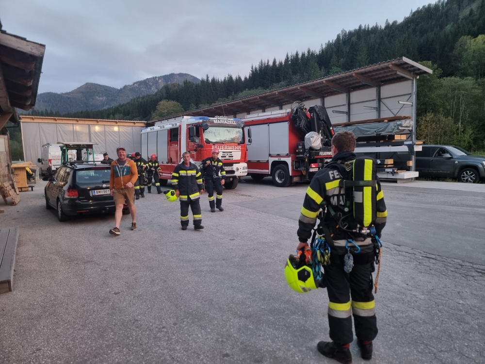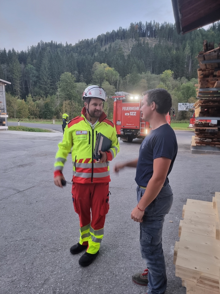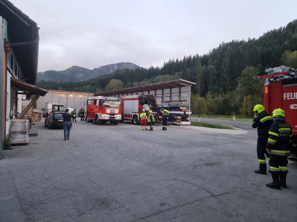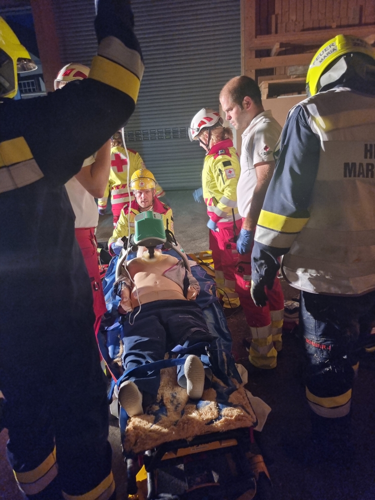 Mariazellerland – Ein außergewöhnliches Szenario erwartete die Feuerwehrkameradinnen und -kameraden am vergangenen Montag: Gemeinsam mit dem Roten Kreuz Mariazellerland wurde eine groß angelegte Übung auf dem Gelände der Firma Holzbau Dallago & Zefferer durchgeführt.