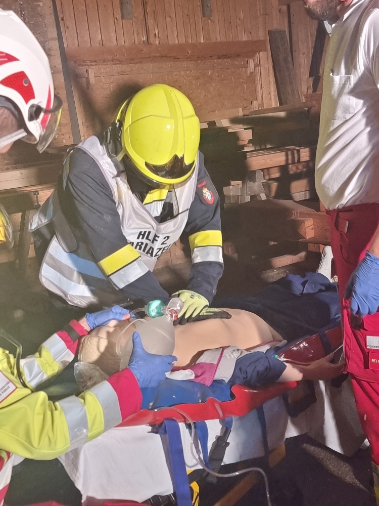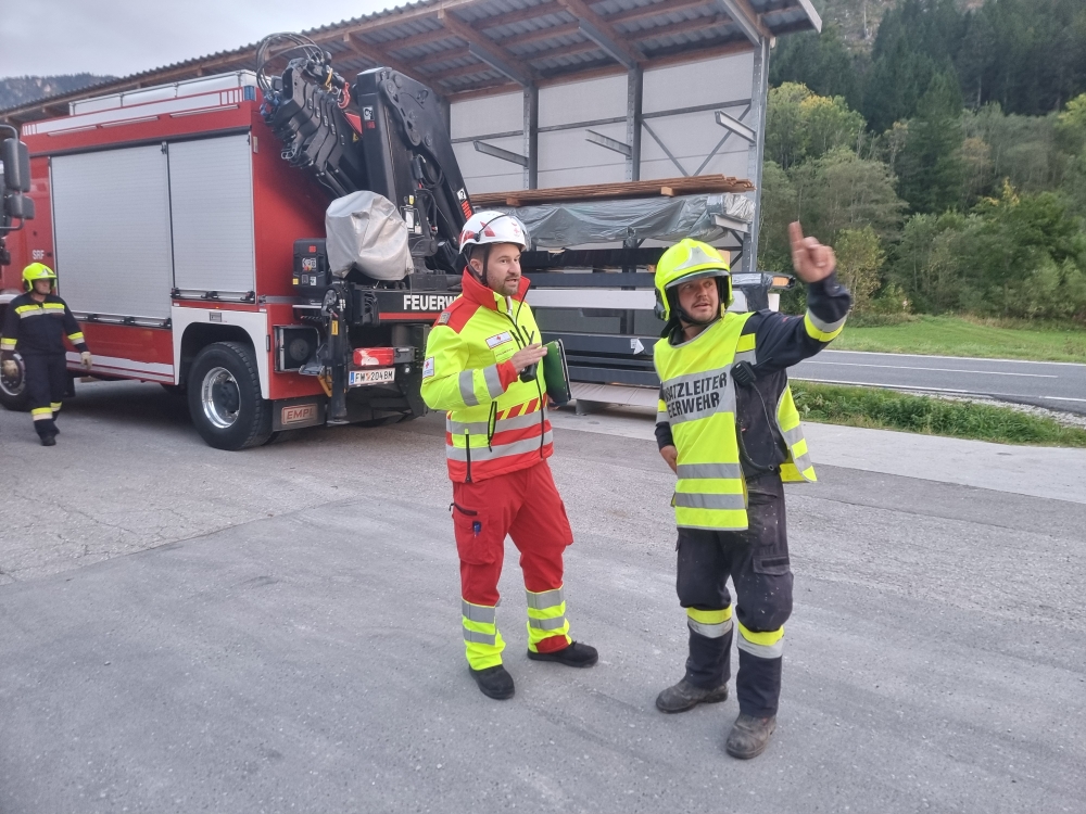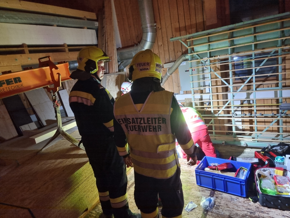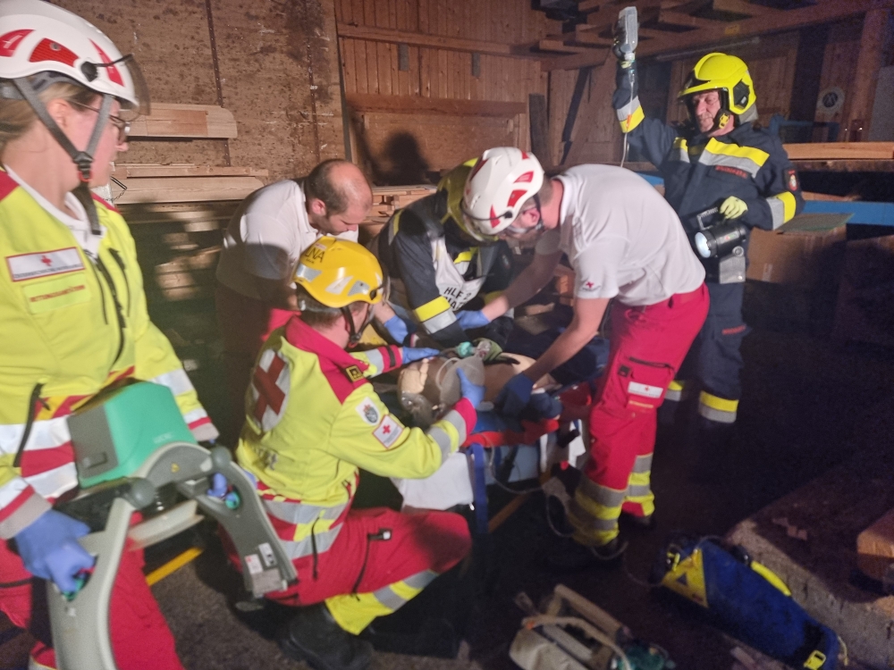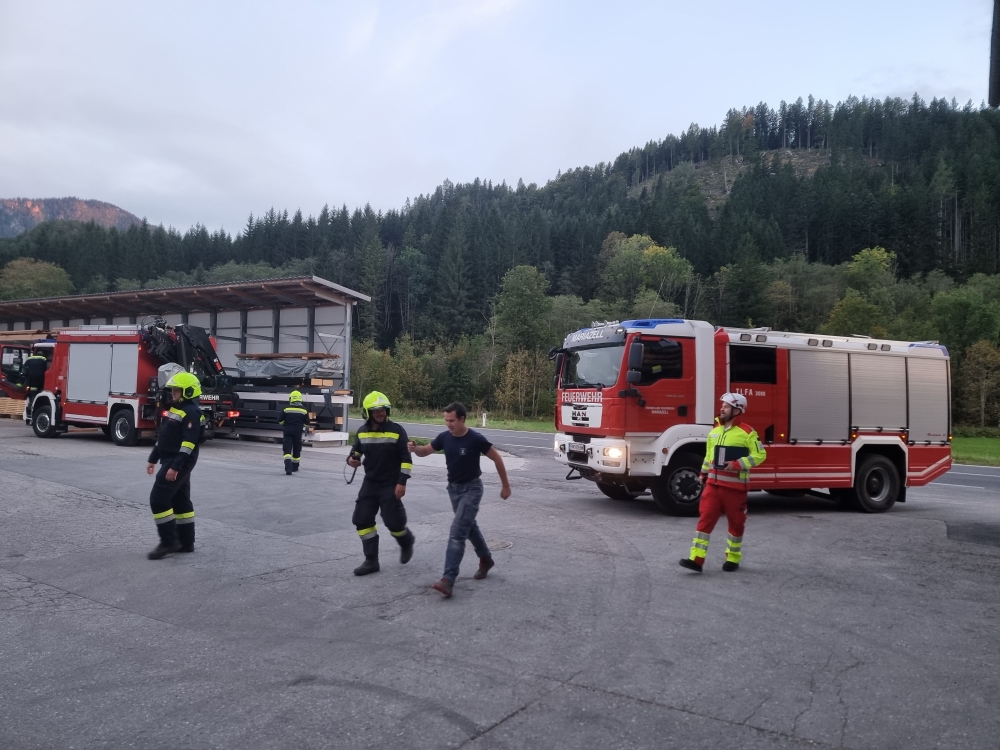 Mariazellerland – Ein außergewöhnliches Szenario erwartete die Feuerwehrkameradinnen und -kameraden am vergangenen Montag: Gemeinsam mit dem Roten Kreuz Mariazellerland wurde eine groß angelegte Übung auf dem Gelände der Firma Holzbau Dallago & Zefferer durchgeführt.