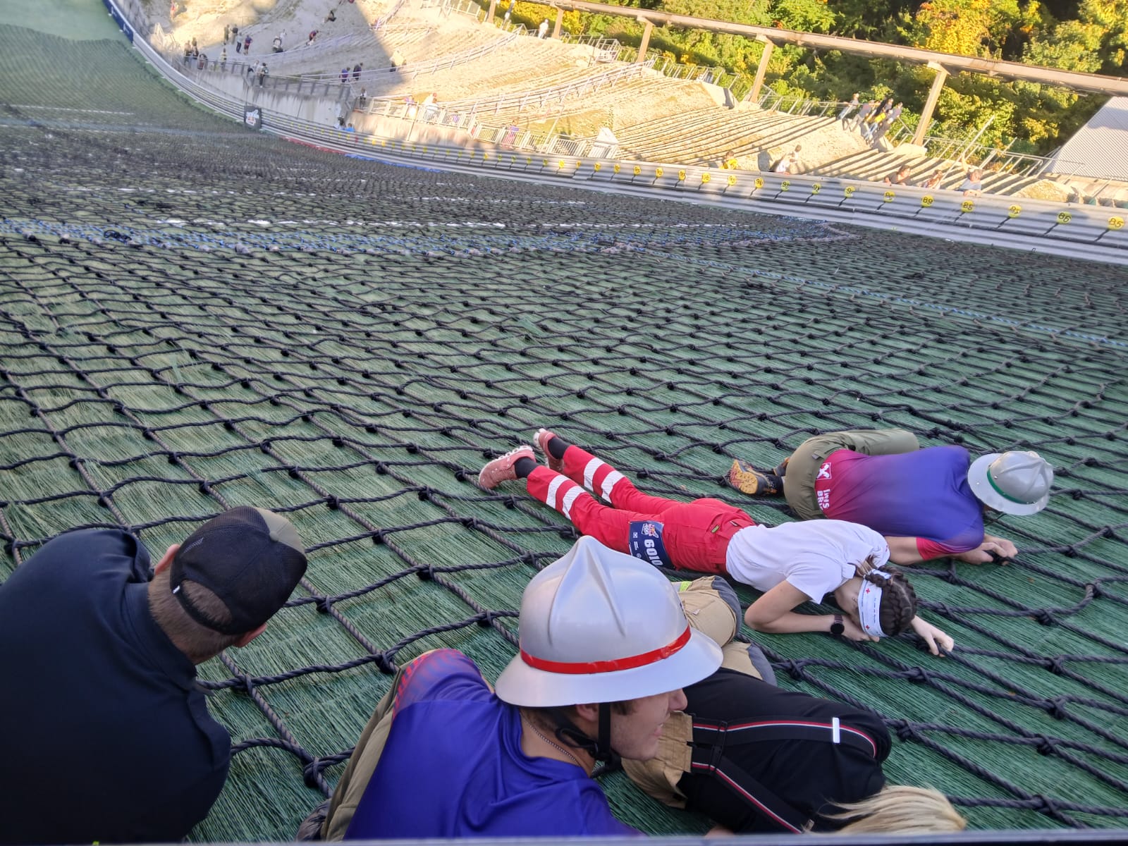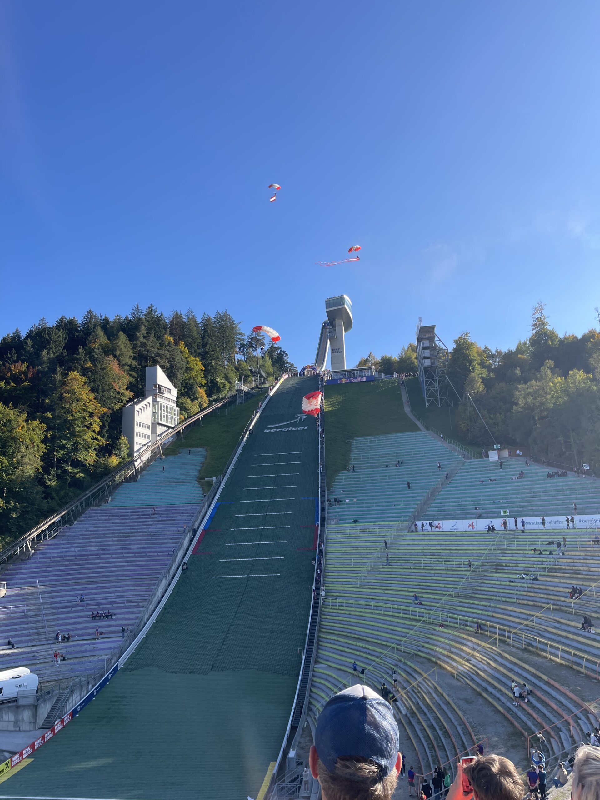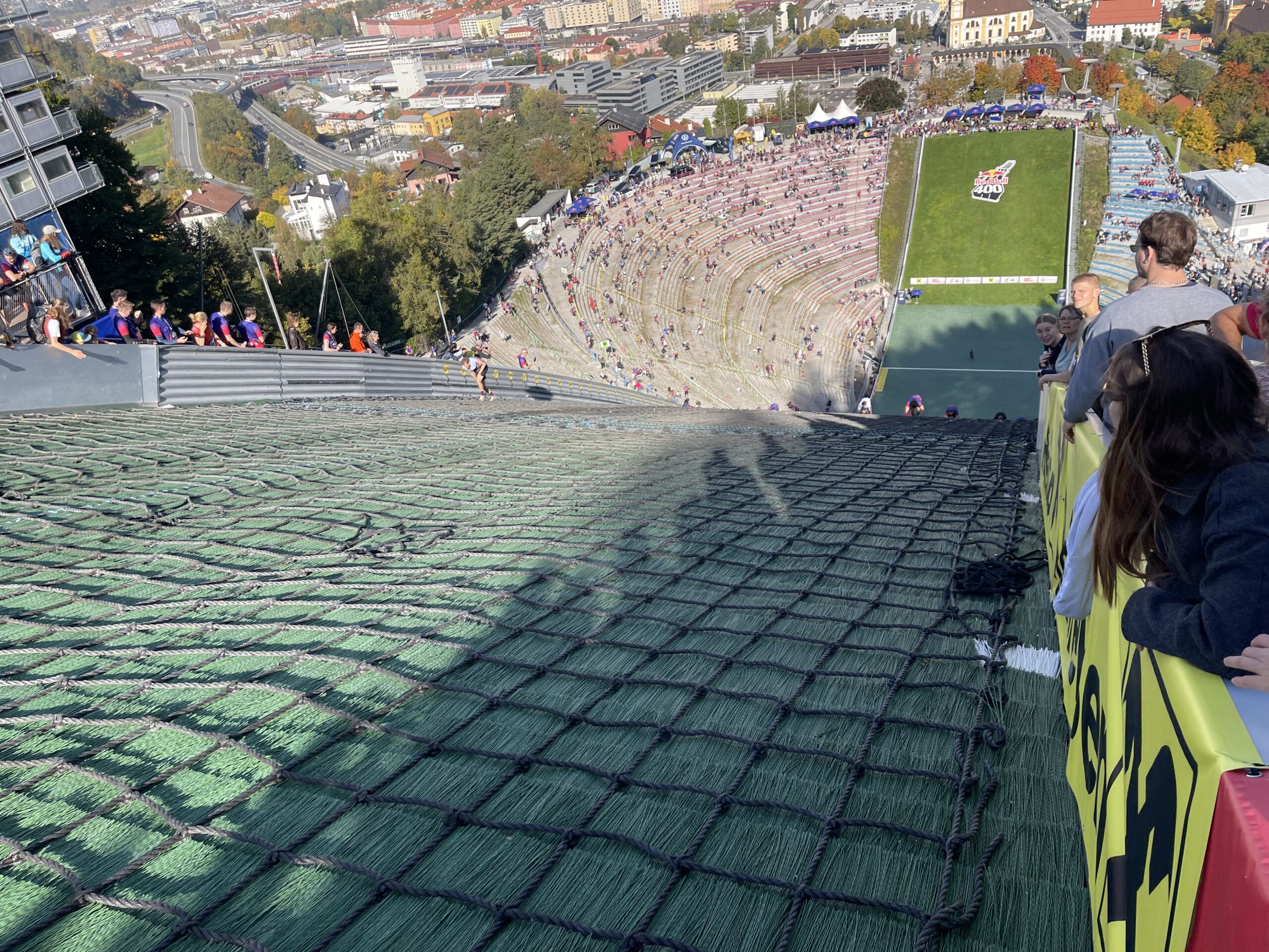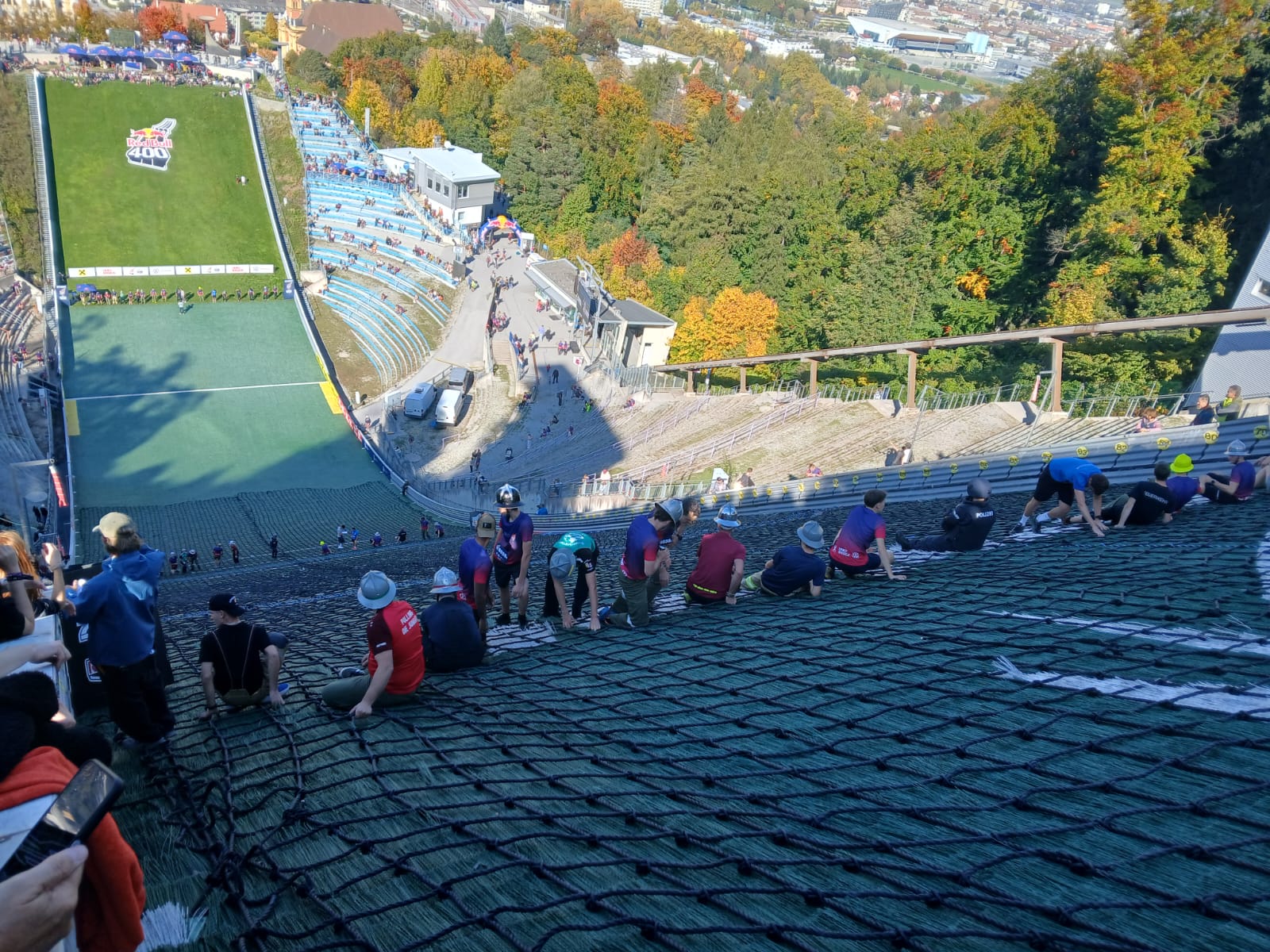 Dabei geht’s für die Teilnehmer:innen steil bergauf – im wahrsten Sinne des Wortes: vom Auslauf über den Schanzentisch bis ganz nach oben!