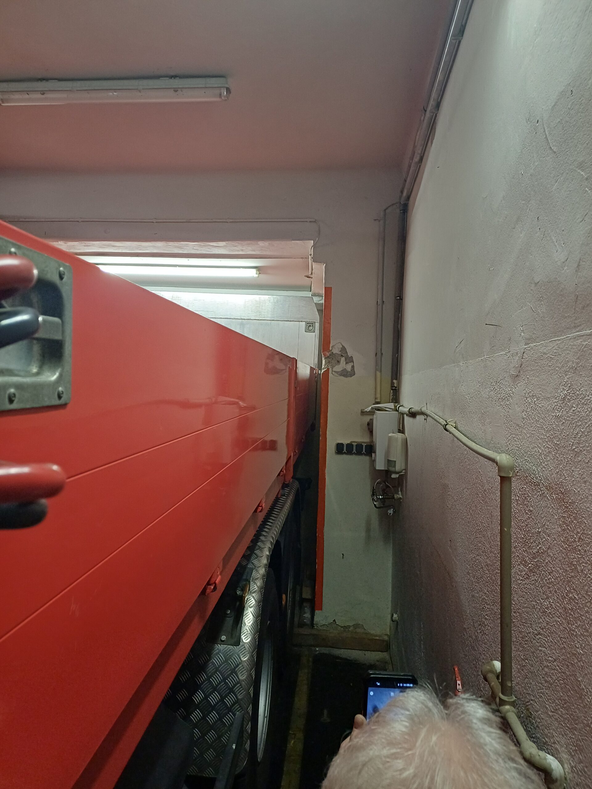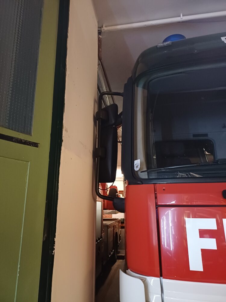 Die Kameradinnen und Kameraden staunten über die präzise Fahrzeugaufstellung, die aufgrund der engen Platzverhältnisse zentimetergenaues Rangieren erfordert. Da das Feuerwehrhaus unter Denkmalschutz steht, gestaltet sich eine geplante Erweiterung derzeit schwierig – umso beeindruckender war der effiziente Umgang mit dem vorhandenen Raum.