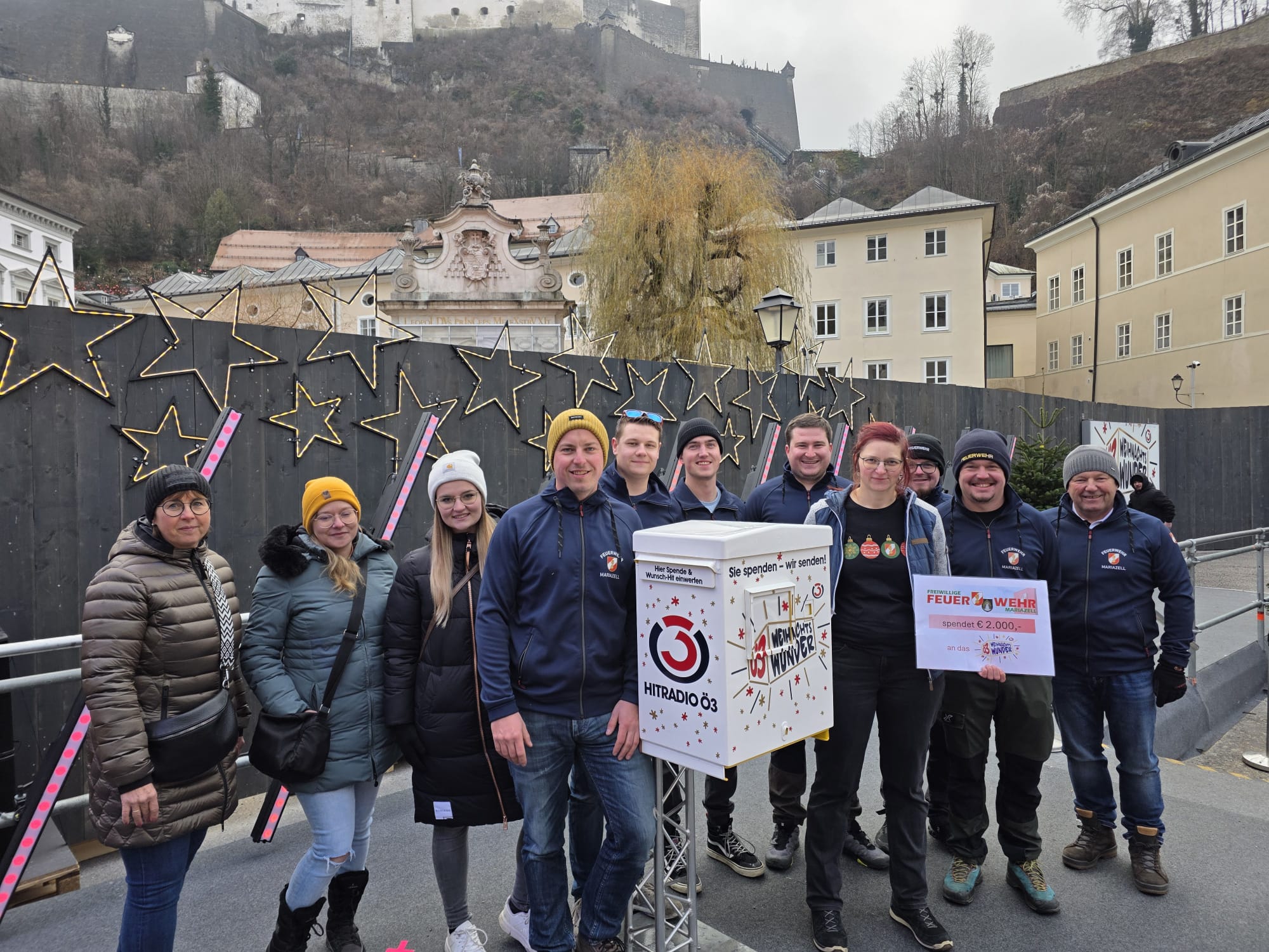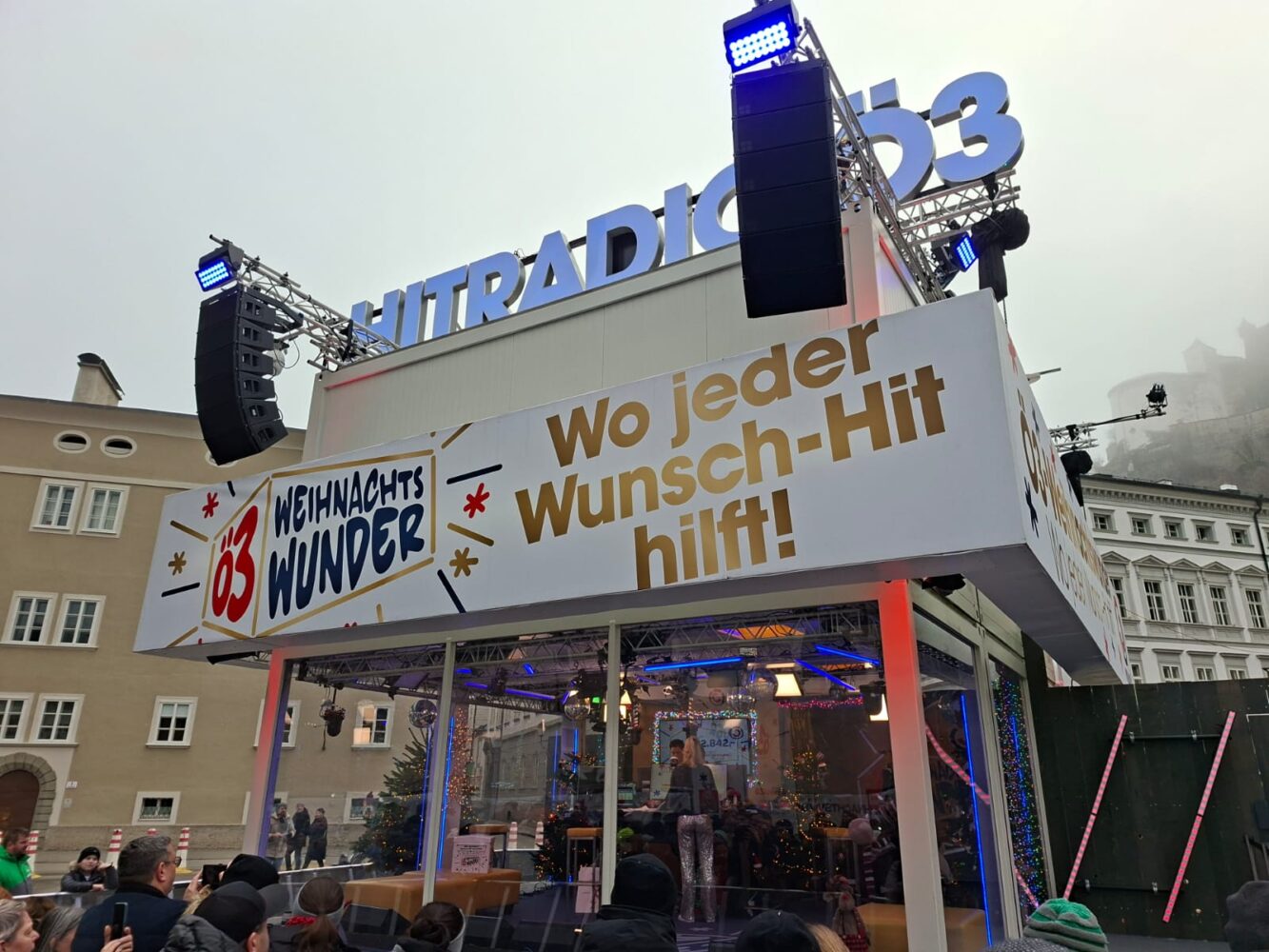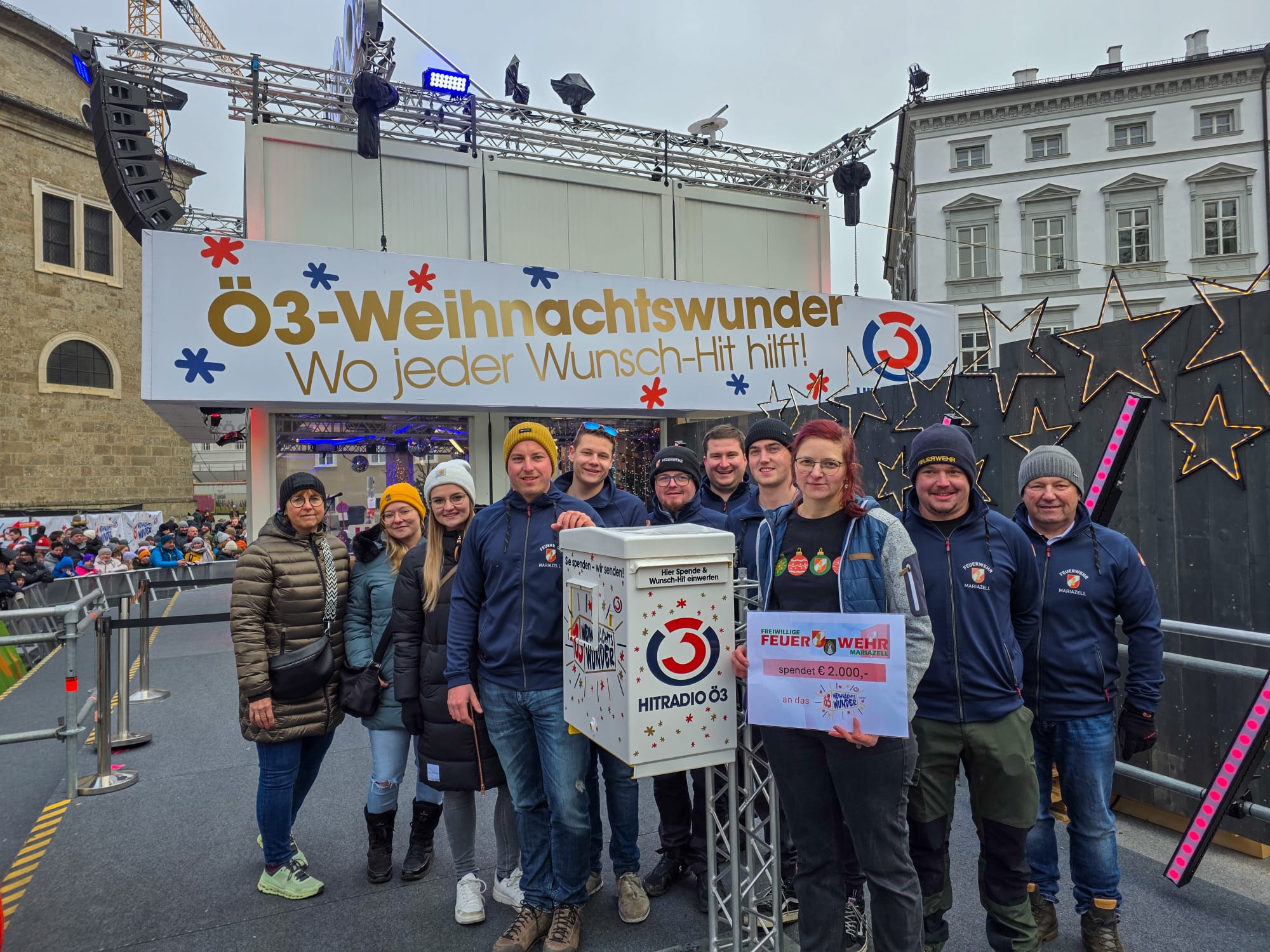 So kam schließlich der großartige Spendenbetrag von insgesamt € 2.000,– zusammen, den wir direkt bei der Wunschhütte des Ö3 Weihnachtswunders in Salzburg übergeben durften.