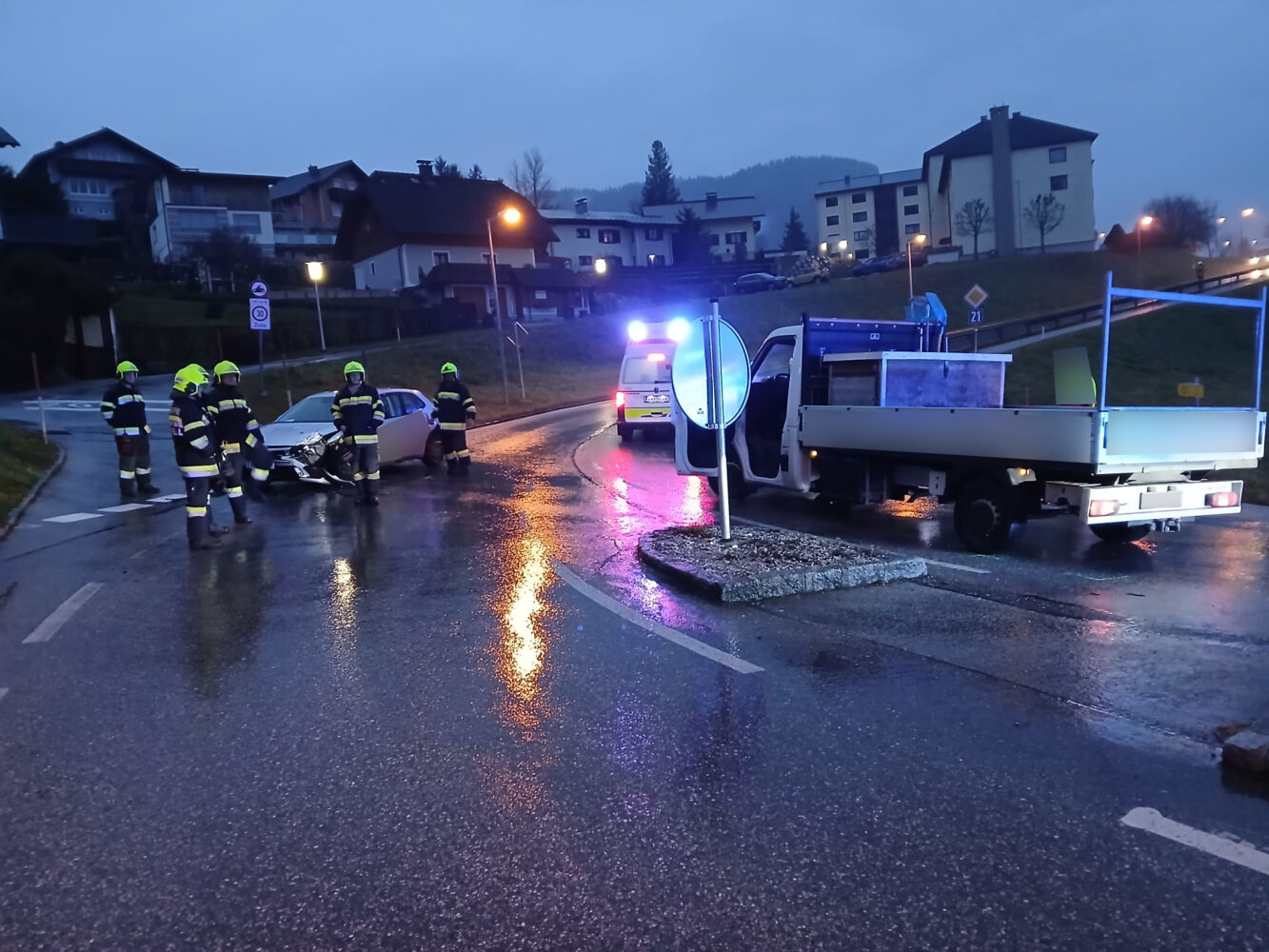 Verkehrsunfall am Feuerwehrparkplatz: Pkw rutscht Böschung hinab